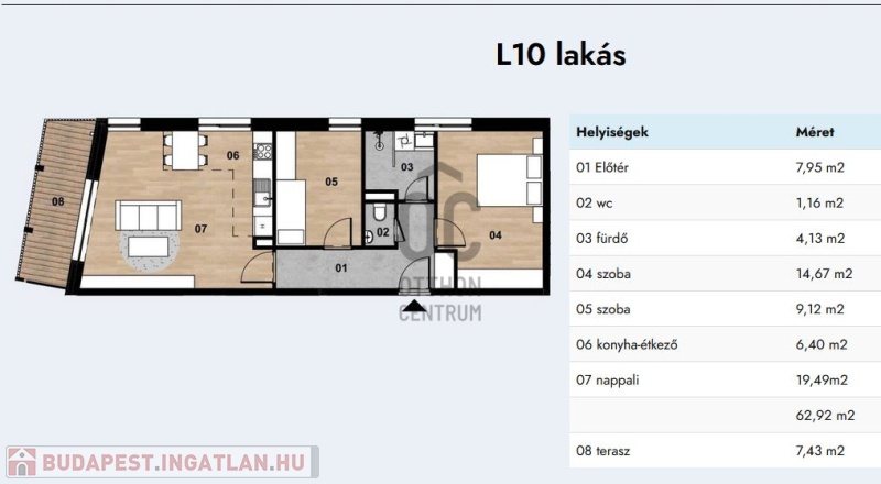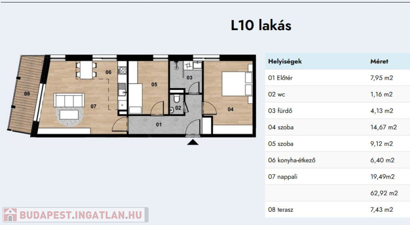 - 66,58 négyzetméter, alacsony energiaigényű, 7,42 négyzetméteres terasszal