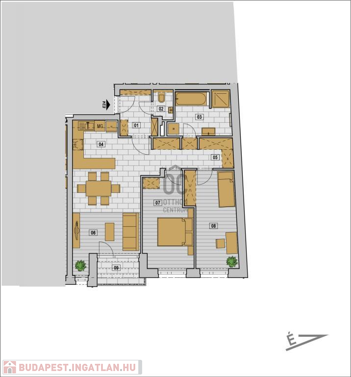 - utcafronti francia erkélyes és kertre néző nagy terasszal rendelkező lakások