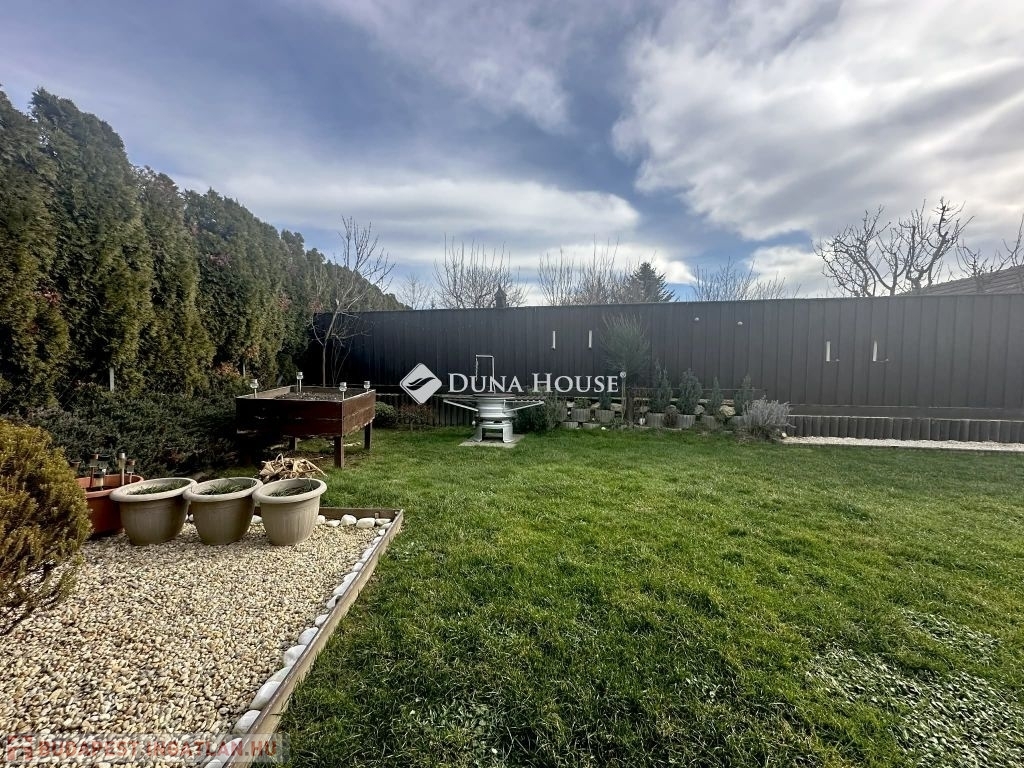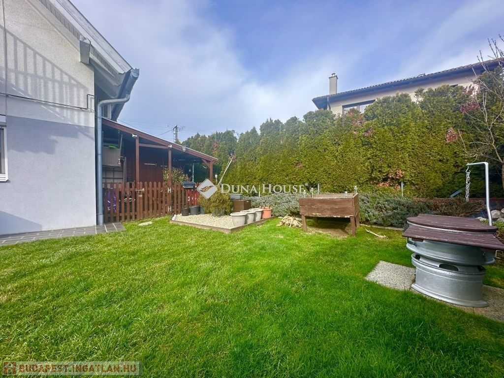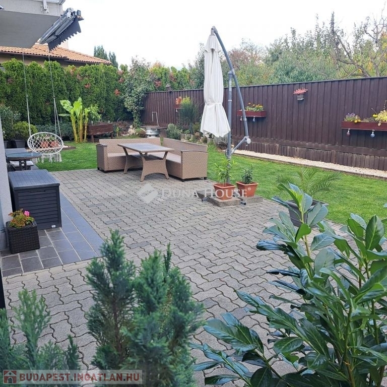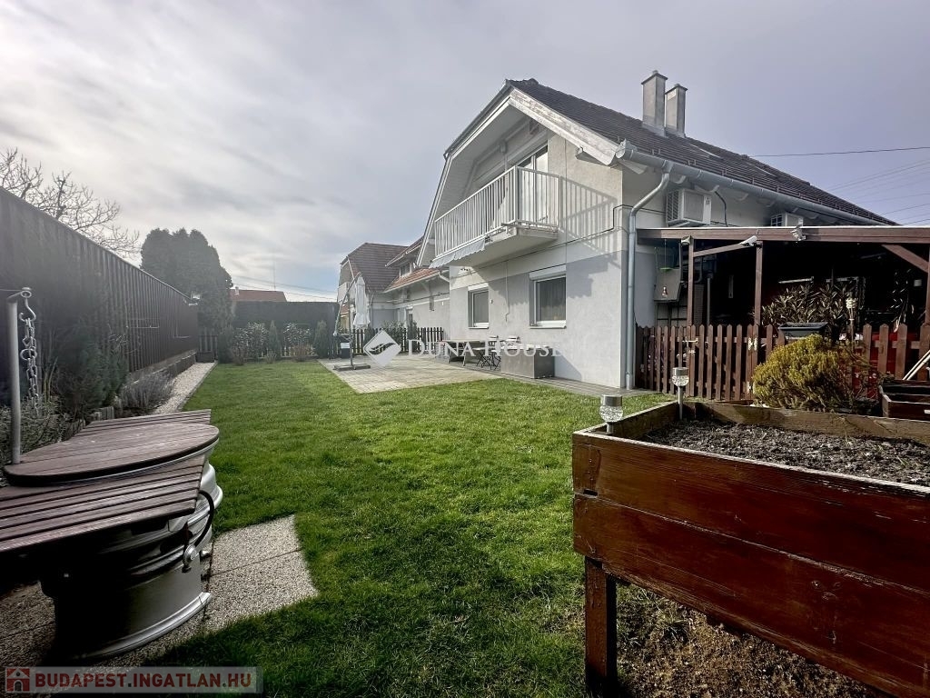 A kert ideális pihenésre, családi és baráti összejövetelekre, továbbá egy kis tároló is rendelkezésre áll.