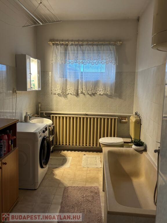 Az ingatlan kényelmes, minden igényt kielégítő, 180 nm nagyságú. Található benn egy tágas nappali, kettő nagy szoba, három félszoba, egy gardrób, két fürdőszoba, egy különálló WC, jól felszerelt konyha, kamra, kazánház és garázs. A konyhában mosogatógép, villanytűzhely és sütő, páraelszívó készülék, valamint beépített hűtőszekrény biztosítja a kényelmet. A garázsban szerelőakna és rengeteg tárolási lehetőség van. Fűtése Totya 55-ös vegyestüzelésű kazán. A gázkazánt évek óta nem használják. A ház légkondicionálóval ellátott. A meleg vizet gázbojler biztosítja, de villanybojler is rendelkezésre áll.