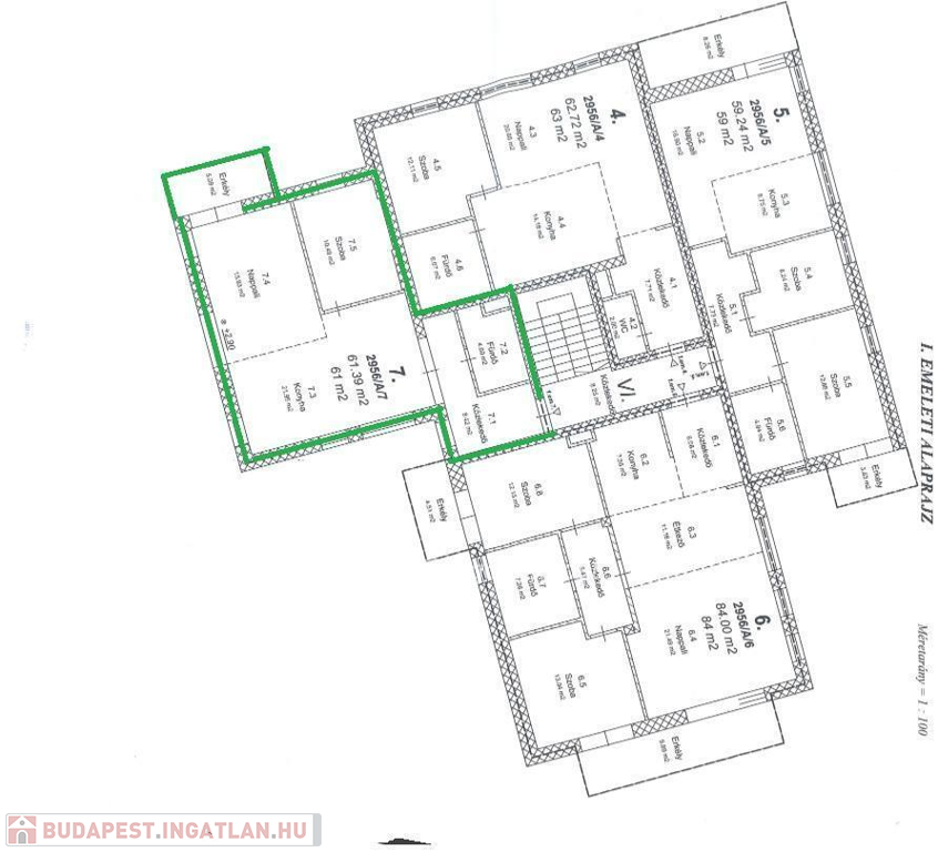 A kínált 61m2-es plusz 5m2-es erkéllyel rendelkező I. EMELETI lakás praktikus elrendezésű: előszoba-közlekedő, tágas amerikai konyhás nappali, egy hálószoba, egy erkéllyel valamint fürdőszobával rendelkezik.