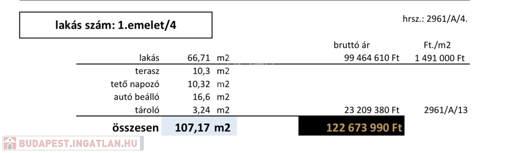 Lakások nettó alapterülete: 66,71 nm