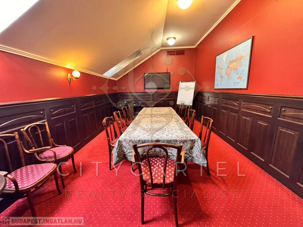 Az első szinten található még egy 15 fős külön tárgyalóterem, valamint a gépház, amelyben a központi légkondicionáló berendezés és a 2 db Buderus gázkazán került elhelyezésre.