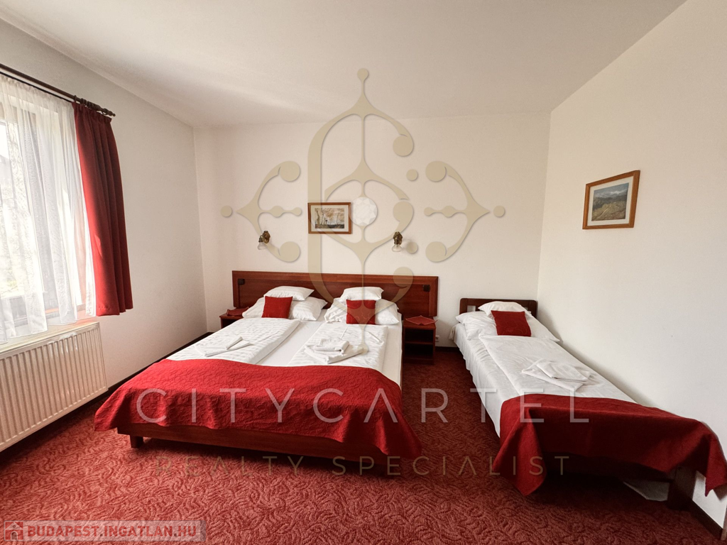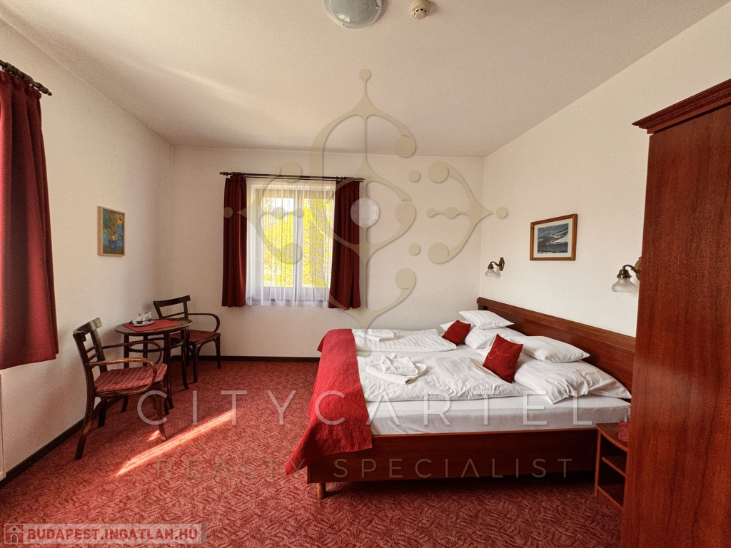 Budaörs közkedvelt, központi, jól megközelíthető részén kínálunk eladásra egy rendkívül barátságos, kellemes, jó állapotú, részben bútorozott, nagy teraszos, kertes, 14 kétágyas, légkondicionált, zuhanyzós-fűrdőszobás szobával rendelkező hotelt. A szobákban TV, telefon és minibár is biztosítja a vendégek maximális kényelmét.