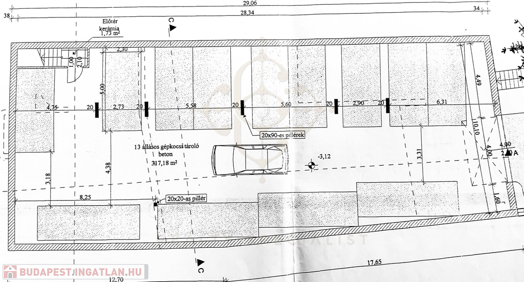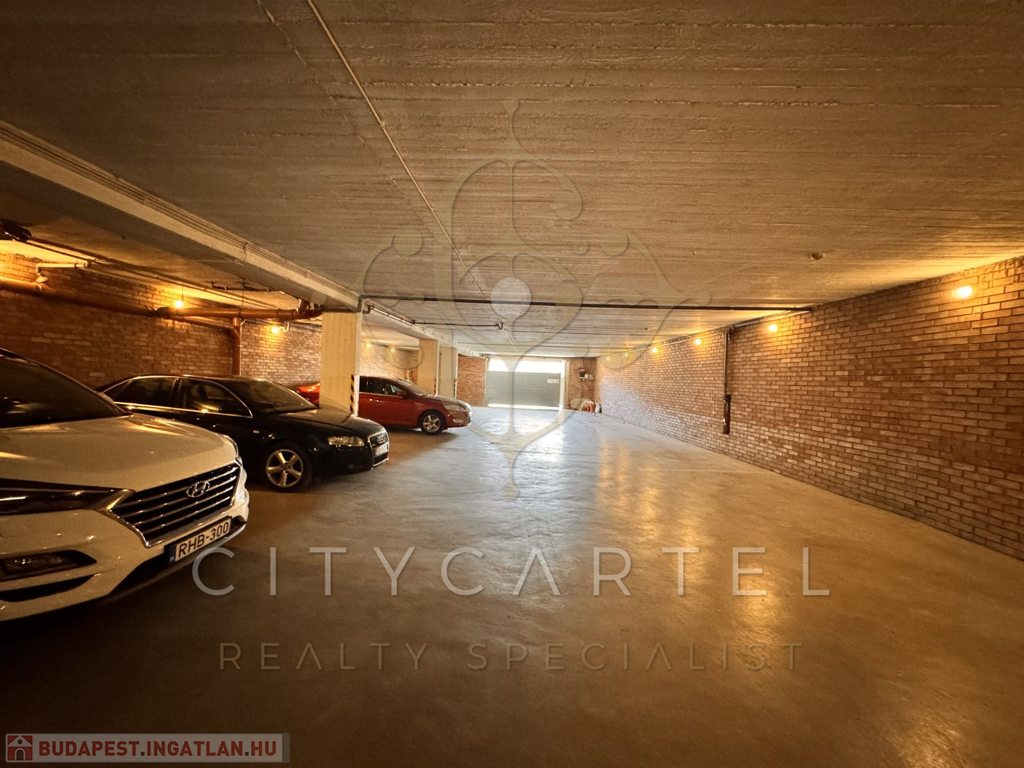 A pince szinten 13 gépkocsi tárolására alkalmas garázs van, de az udvaron és közvetlenül a ház előtt is elég sok autó elfér.
