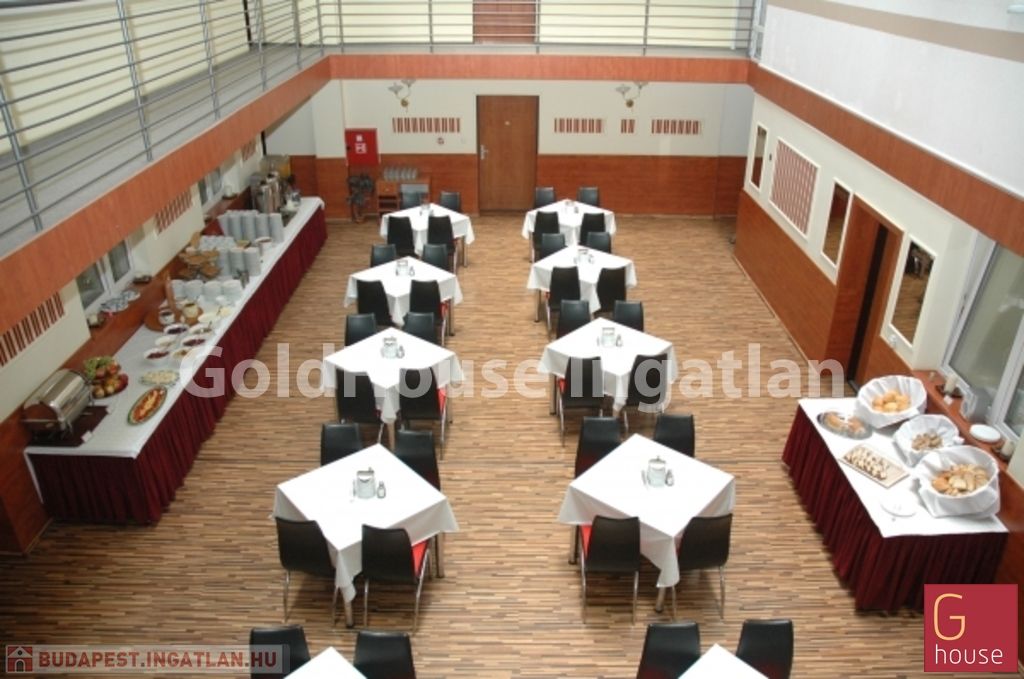 Az átriumban kapott helyet a reggeliző helyiség, ahol egyszerre száz vendég tudja kényelmesen elfogyasztani meleg tálas, svédasztalos reggelijét. Egyéb adatok: Pinceszinti hasznos alapterület: 393,94 m2 Földszinti hasznos alapterület: 448,48 m2 Galériaszint hasznos alapterület: 467,21 m2 I-V. emeletek hasznos alapterülete : 398,44 m2 - 398,44 m2 Tetőtéri hasznos alapterület: 381,30 m2 Padlástér hasznos alapterület: 334,54 m2 12 db garázs beálló hely.
