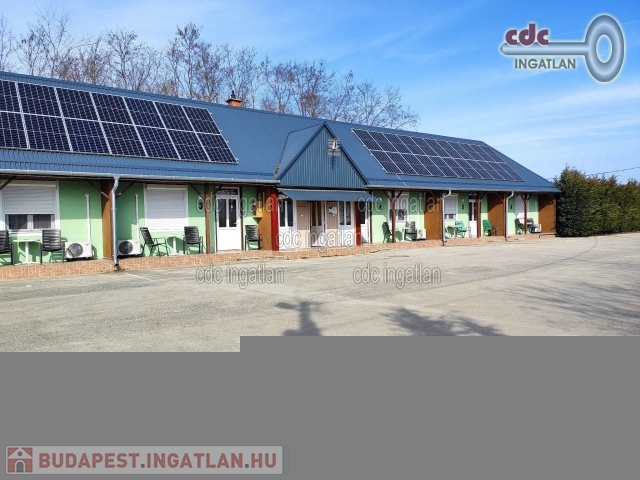 Vas megyében, a 86-os főközlekedési út mellett kínálunk megvételre egy bejáratott, jól működő vendéglátó egységet. Az építmény része egy könnyűszerkezetes épület, ahol 6 db kétágyas apartman található, amely fűtése hűtő-fűtő klímával működik. Az apartmanok egyenként 27 m2 méretűek. Előszoba, zuhanyozó, külön WC-vel és egy szoba konyhasarokkal került kialakításra minden apartmanban. A főépüleben melegkonyhás étterem működik, 40 vendég fogadására alkalmas üzlettérrel. Az étterem felett egy hangulatos, napfényes, 68 m2-es, összkomfortos lakás került kialakításra, melyet jelenleg a tuajdonos használ. A telken több melléképület is található, melyek funkció szerint garázs, fatároló és kerti eszköz tároló. Az ingatlan elhelyezkedése, földrajzi fekvése biztosítja a folyamatos vendégforgalmat.