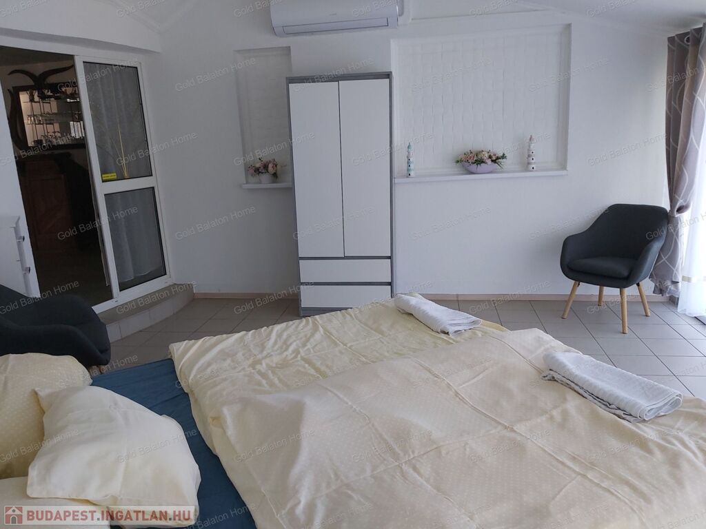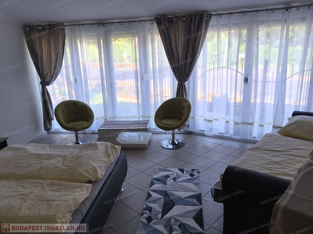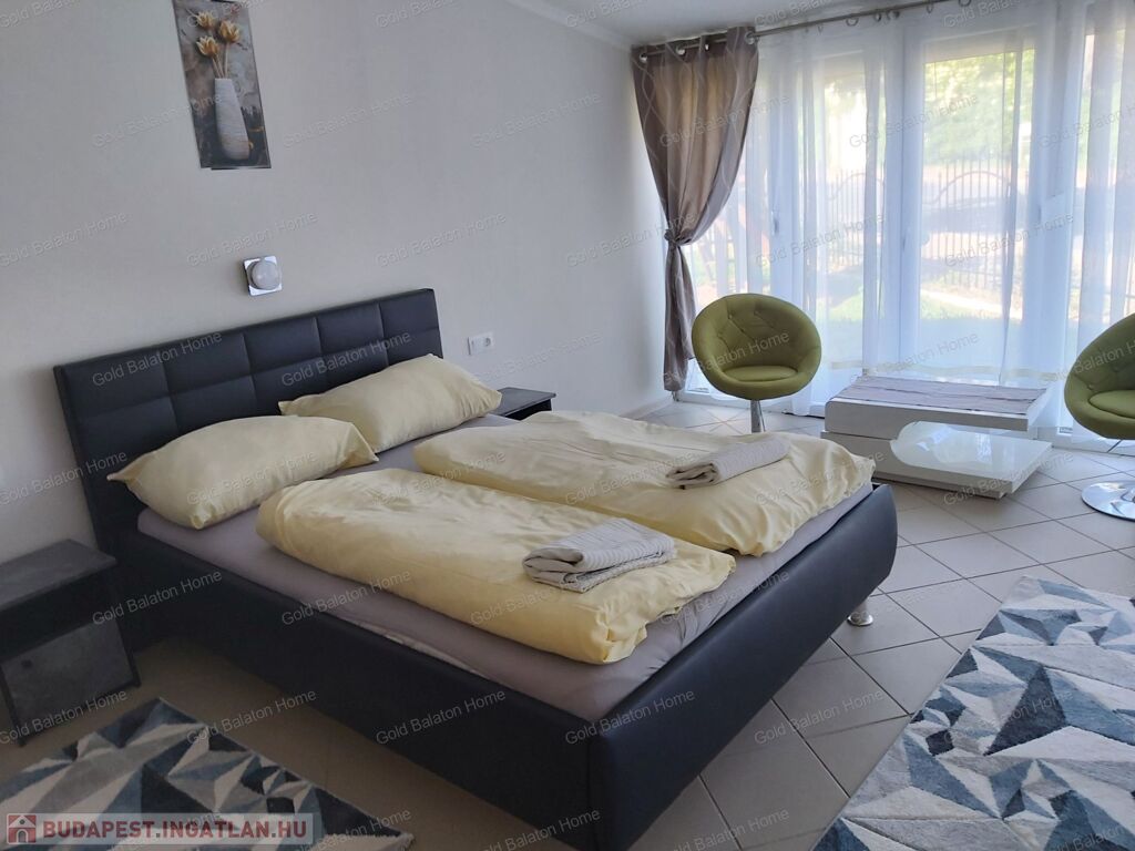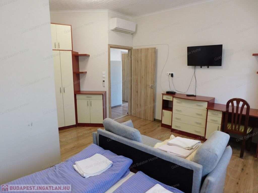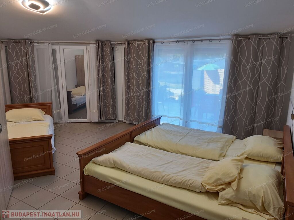 A Gold Balaton Home Ingatlaniroda megvételre kínálja a 731200053-as sorszámú 12 szobás (3 amerikai konyhás nappali, 9 hálószoba) GYENESDIÁSI felújított, szigetelt, fűthető APARTMANHÁZAT a népszerű, gyermekbarát strand szomszédságában