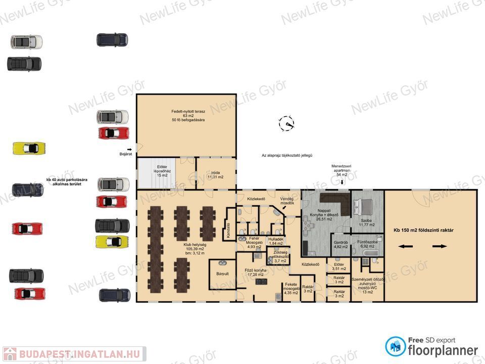 Parkolás: 40 autó parkolására van lehetőség az objektum előtt.