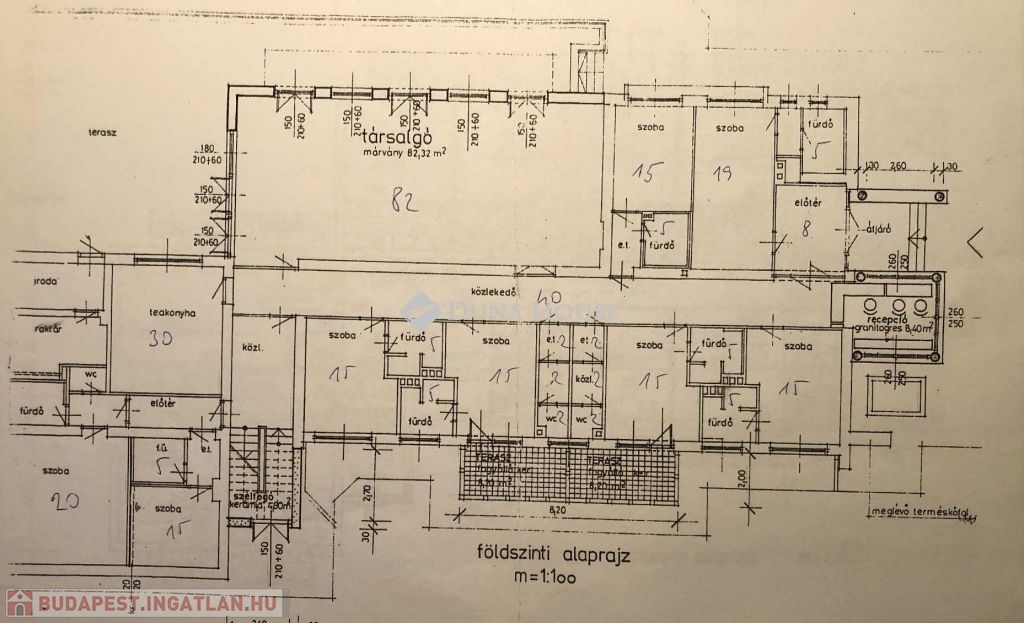 Tetőtér: beépíthető, a közművek felvezetve, a lépcső elkészült, és a tervek is rendelkezésre állnak további 7 szoba kialakítására.