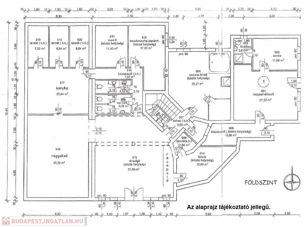 - 1 apartman, -2 kezelőhelység,-pezsgőfürdő szaunával, pihenővel, -Reggeliző, recepció, drinkbár,-konyha, raktárak, - személyzeti szoba,