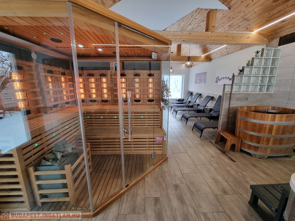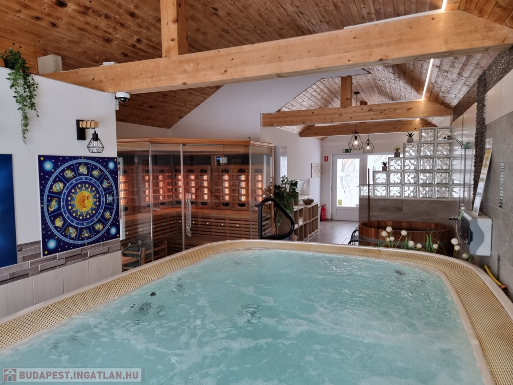 GŐZKABIN, KÜLTÉRI MEDENCE, FITNESS TEREM, FÜRDŐDÉZSA, KERTI PIHENŐK, GYERMEKJÁTSZÓK,