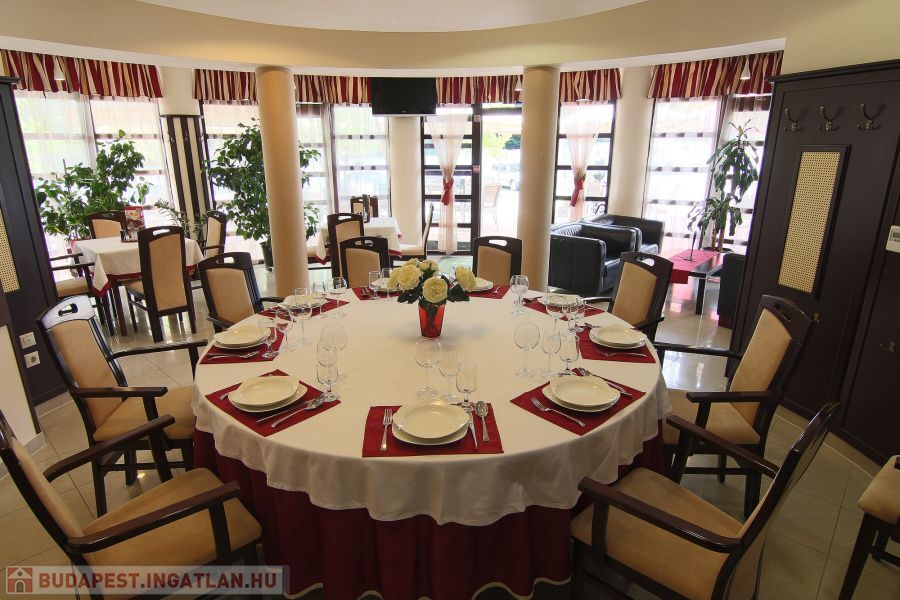 Az épületben 50 fős étterem van minden igényt kielégítő tágas, jól felszerelt konyhával.