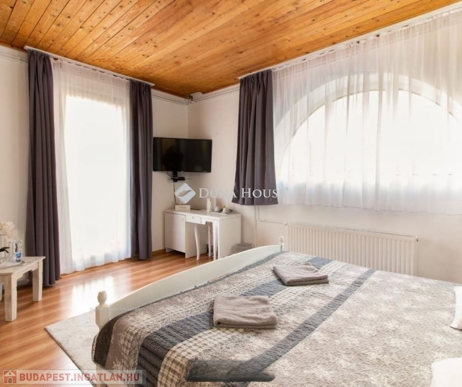 Eladó étterem és panzió Pécsett, a Mecsek festői ölelésében modern, energiatakarékos megoldásokkal!Pécs közkedvelt részén, a Mecsek gyönyörű természeti környezetében kínálunk megvételre egy sokoldalúan hasznosítható, kiváló adottságokkal rendelkező étterempanzió komplexumot. Az ingatlan egy 2905 m²-es, gondosan parkosított és teljesen körbekerített telken helyezkedik el, ahol a nyugalom és a természet közelsége garantált.A 650 m²-es épületben egy hangulatos fedett terasz, egy 60 férőhelyes étterem, valamint egy különálló, akár 40 fő befogadására alkalmas rendezvényterem kapott helyet. A vendégek kényelméről 7 klimatizált szoba gondoskodik.Az ingatlan kiemelkedő előnye a korszerű napelemes rendszer, amely teljes mértékben biztosítja az épület villamosenergia-ellátását, így hosszú távon is fenntartható és gazdaságos üzemeltetést tesz lehetővé.A tulajdonosok számára egy különálló, 125 m²-es, háromszobás lakrész lett kialakítva, amely ideális otthont biztosít az üzemeltetők számára.A helyszín jelenleg is rendkívül népszerű rendezvények, különösen esküvők lebonyolítására, és akár 150 fős lakodalmak megrendezésére is kiválóan alkalmas.Legyen szó vendéglátásról, rendezvényszervezésről vagy akár oktatási, intézményi célú hasznosításról, ez az ingatlan számos lehetőséget kínál.További információért vagy személyes megtekintés egyeztetéséhez keressen bizalommal!