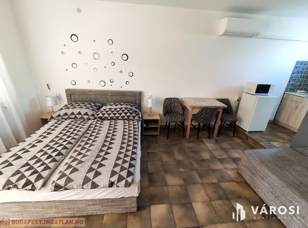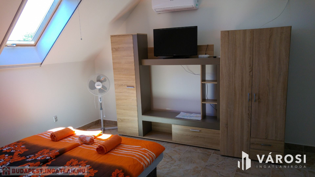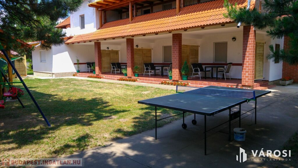 Siófok kertvárosi részében eladó egy 15 apartmanból álló apartmanház! Precízen átgondolt, rendkívül praktikusan megtervezett, bruttó 500 m2-es házról van szó. Ellentétben a legtöbb hasonló balatoni ingatlannal ez az épület kifejezetten kiadásra épült, nem utólagos átalakítások eredménye. Ennek megfelelően mind a 15 apartmanjához saját felszerelt konyha és fürdőszoba tartozik. Mindegyik külön bejáratú. Az összes lakóegységnek hűtő-fűtő hőszivattyús klímával van megoldva a hűtése és a fűtése. A "H" tarifás mérőóra fel van szerelve az ingatlanra, így a fűtése rendkívül gazdaságos. A használati meleg vizet gázbojler biztosítja.