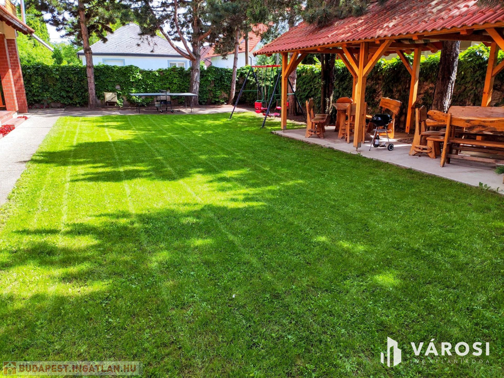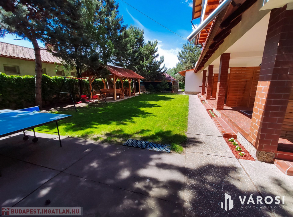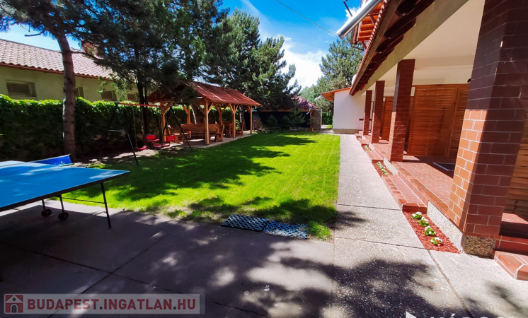A telek 980 m2-es. Az udvarban kialakításra került egy mosókonyha, amely 2 mosógéppel, 2 szárítógéppel és 1 mosogatógéppel van felszerelve, hogy az apartmanházhoz kapcsolódó összes mosási, szárítási és mosogatási feladatokat helyben el lehessen végezni. A kertben ping-pong asztal, hinták, valamint egy 50 m2-es épített szaletli található.