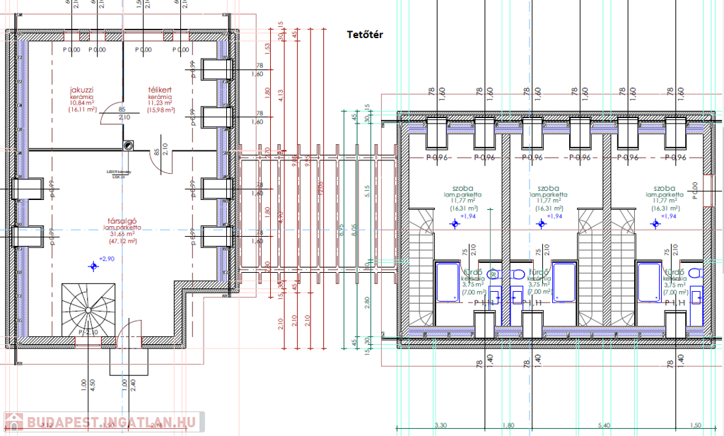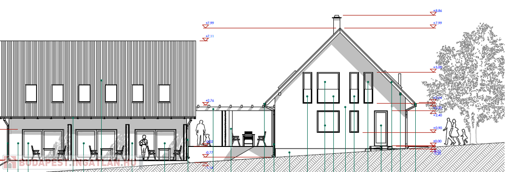 - tervezett gépkocsi beállók, a három apartmanból álló, külön bejáratú apartmanház déli oldalán