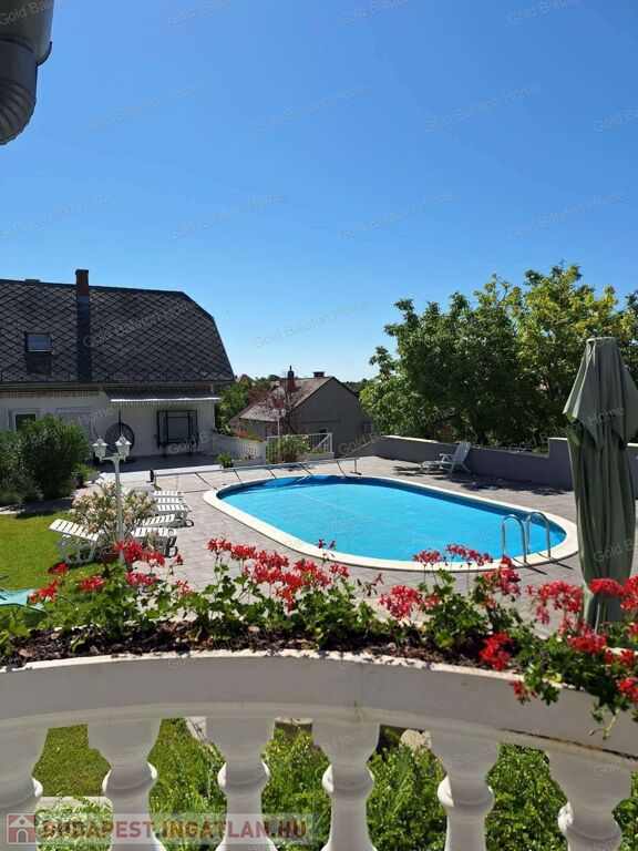 A Gold Balaton Home Ingatlaniroda kínálatában eladó egy külön helyrajzi számon lévő családi ház és a szomszéd telken található, úszómedencés üdülőkomplexum (apartmanház + három apartmanlakásos bungaló).