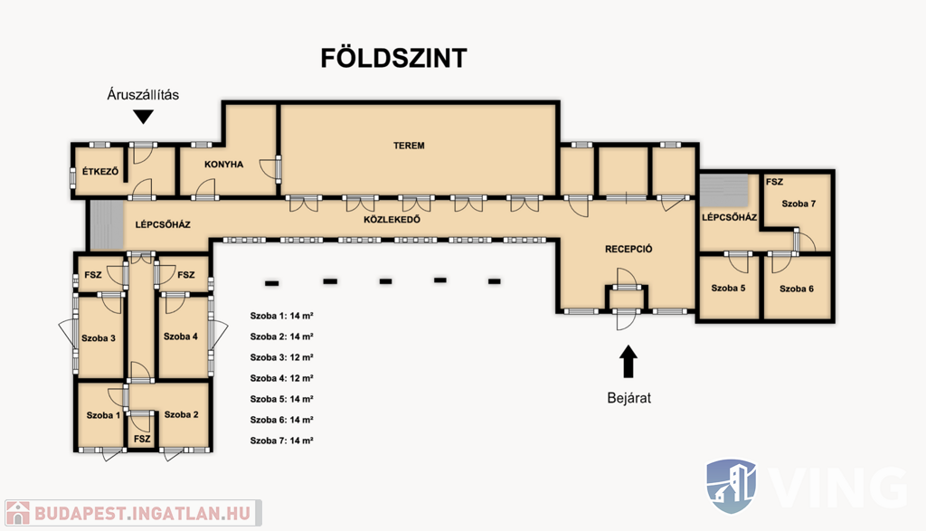 - 6 külön bejáratú apartman mely 1 szobából 1 fürdőszobából áll,