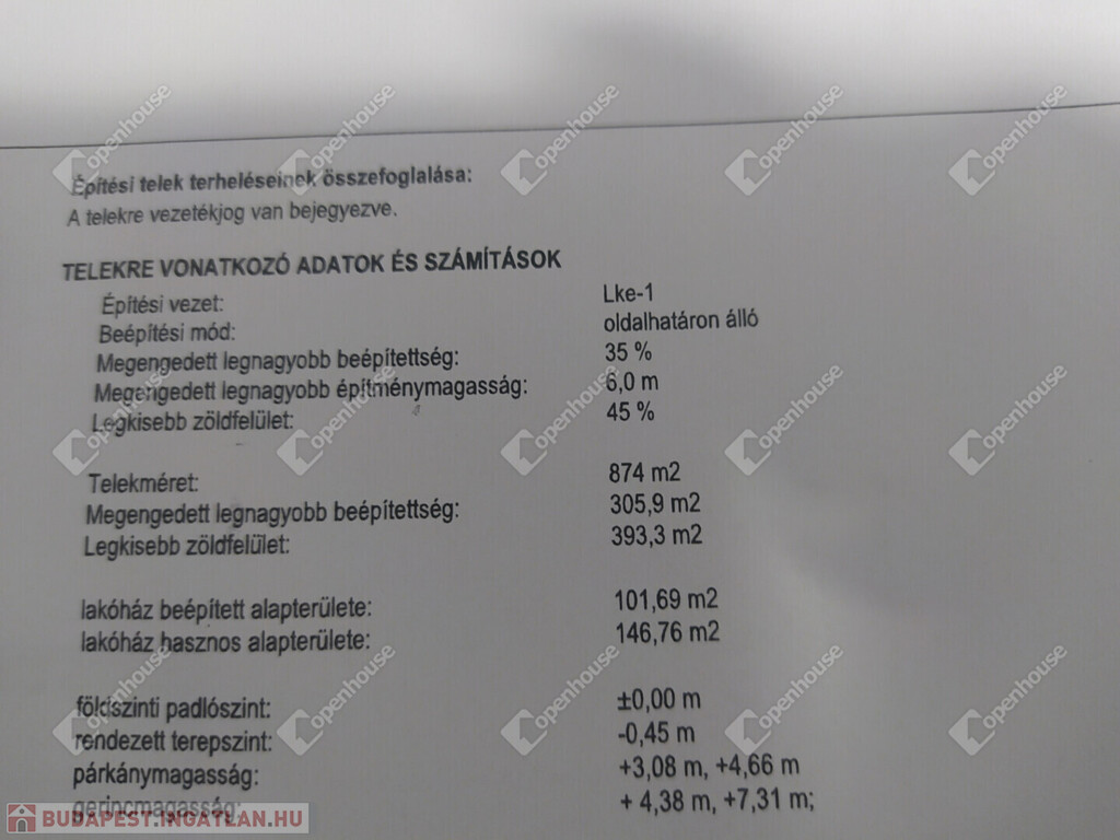 - telek nagysága /tulajdoni lapon meghatározott/ : 874 nm