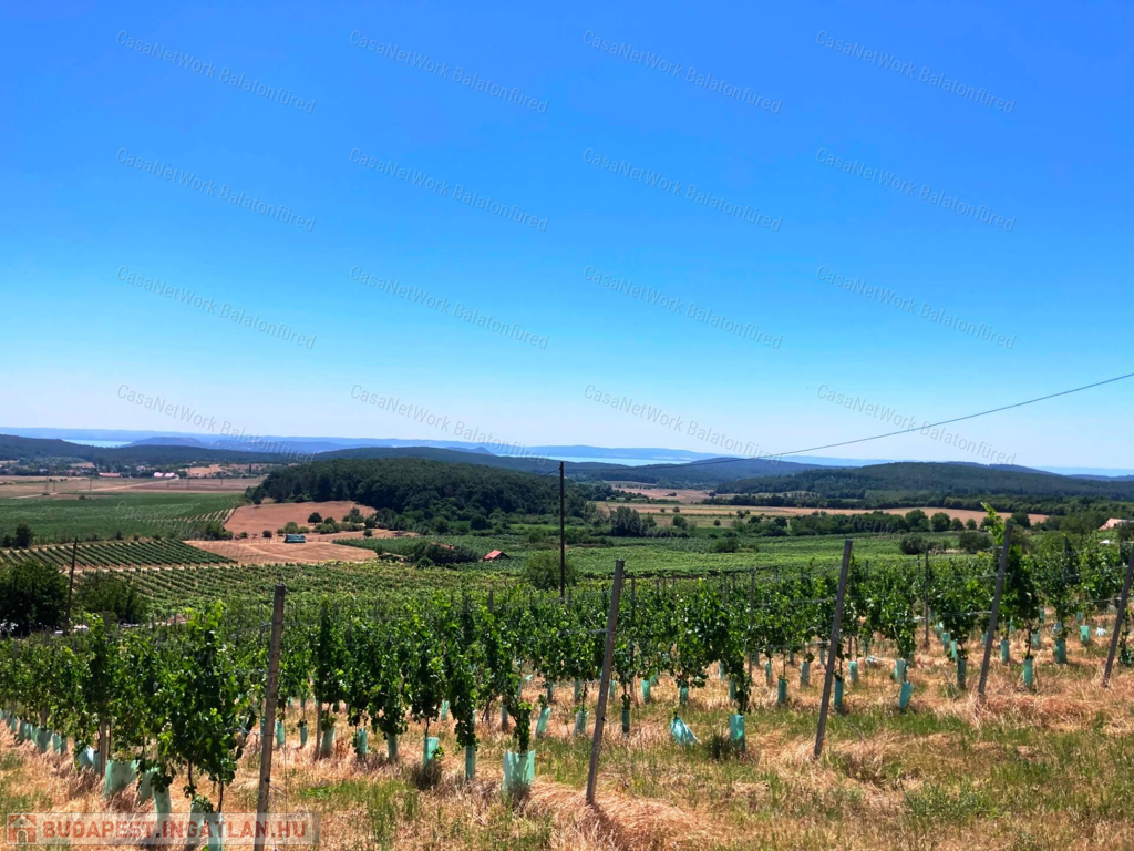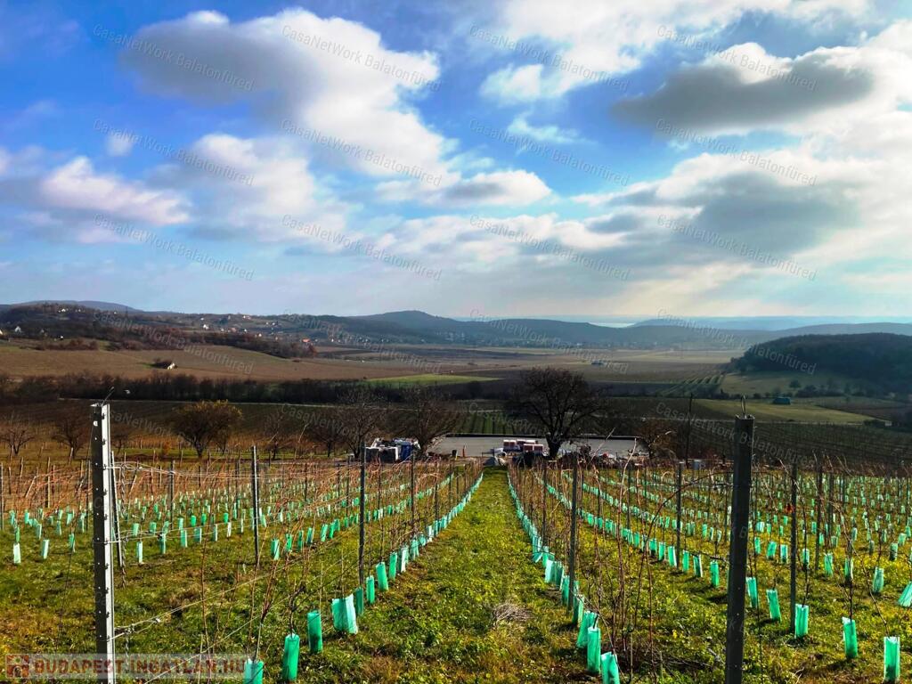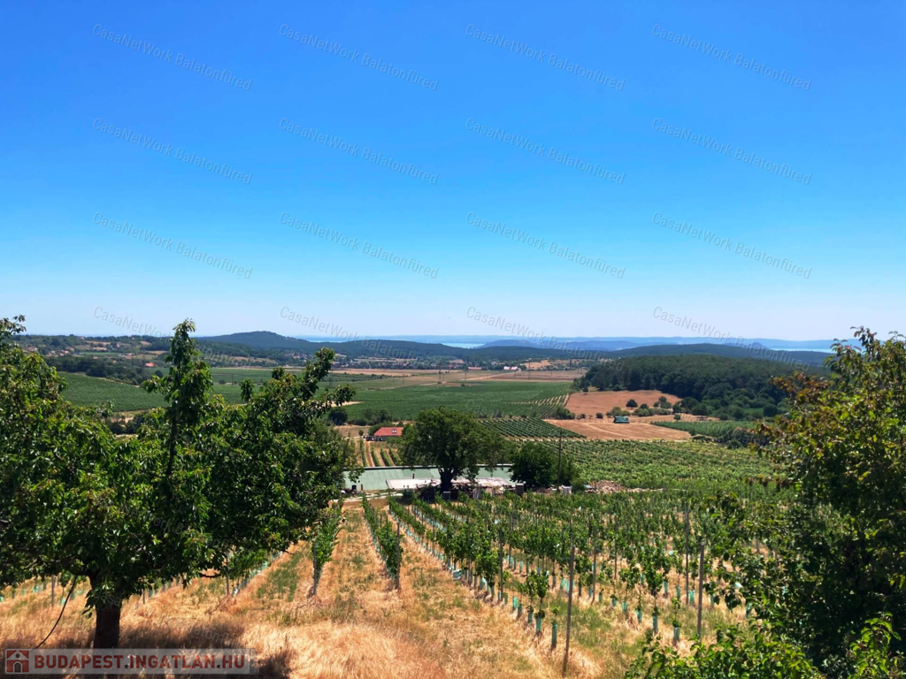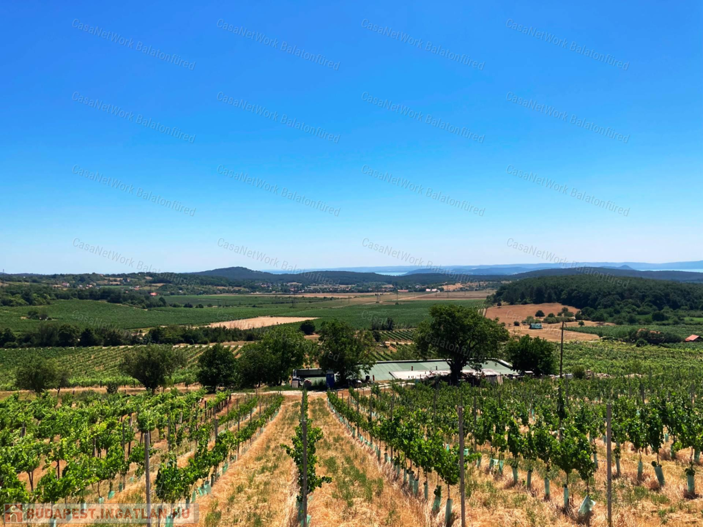 panorámával kifüggesztés, köteles, szőlővel 80 %-ban betelepített, merlot és rizling.