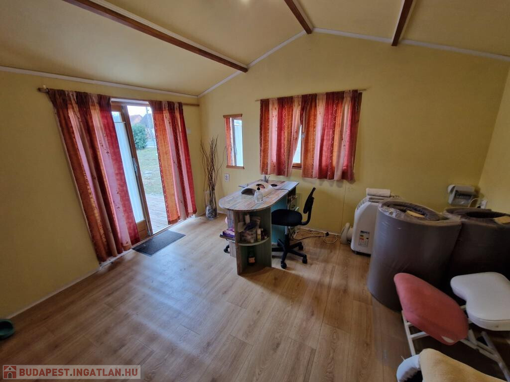 Batéban, Kaposvártól 15 km-re kínáljuk megvételre ezt a belterületi telket a rajta álló faházzal. A telek teljesen sík, a főút mentén fekszik, jól megközelíthető. Áll rajta egy 24 m2-es faház, melybe a víz és a villany be van vezetve. Tágas szobába léphetünk, innen nyílik egy zuhanyzós fürdő WC-vel. A gáz a telken belül megtalálható. A telek 1200 m2-es.