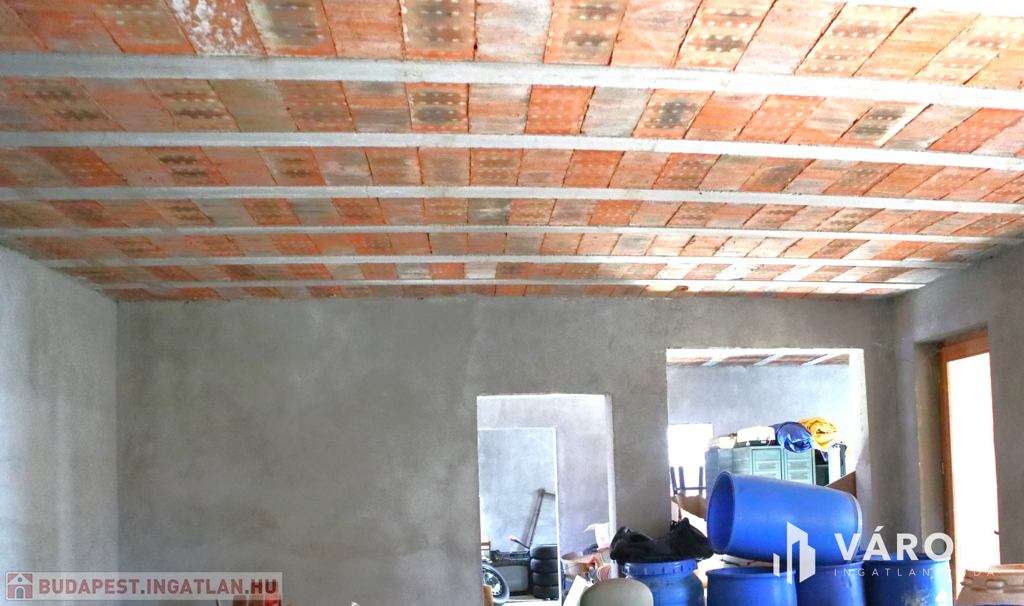 + szerkezetkész épület, víz, villany, gáz bevezetésre került, csatornahálózatra köthető,
