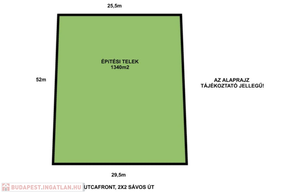- utcafrontja szélesebb 29,5m, befelé 4 métert szűkül a telek 25,5m-re, hosszúsága 52m,