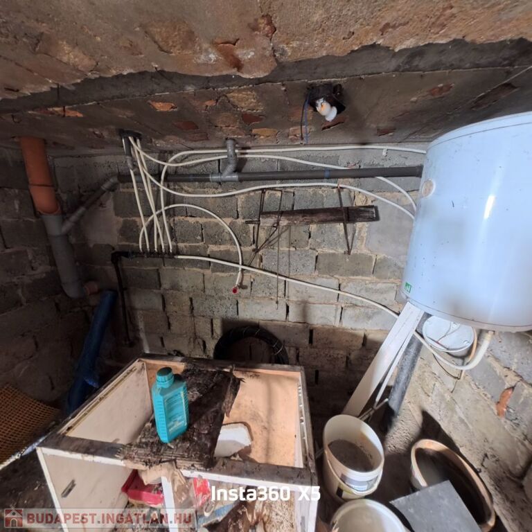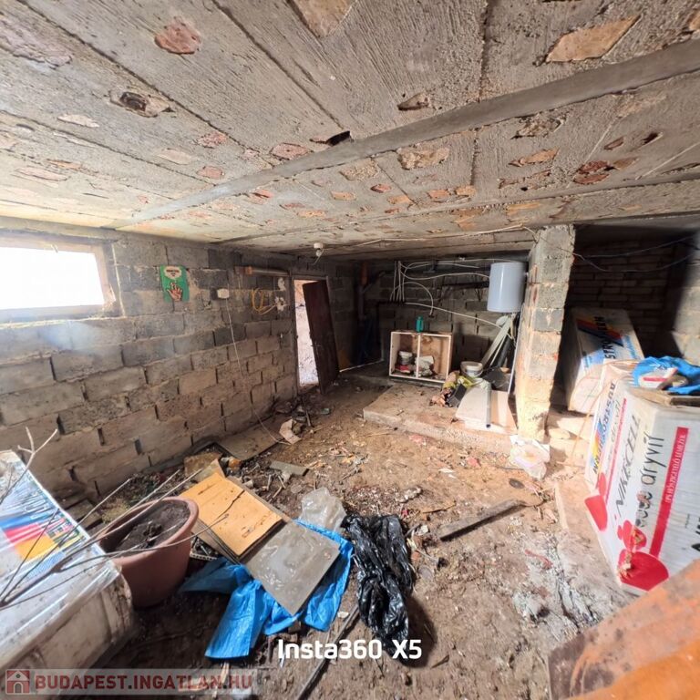 A 25 m²-es pince jelenleg tárolásra alkalmas, itt kapott helyet a villanybojler is.