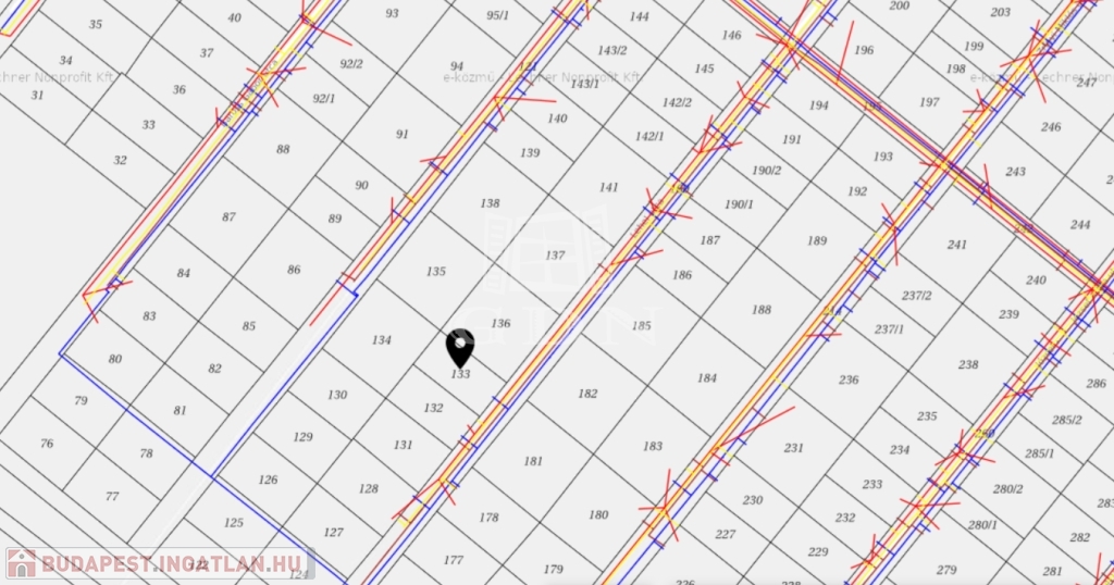 A víz a telken belül található, a gáz, villany, szennyvíz közmű az utcában.