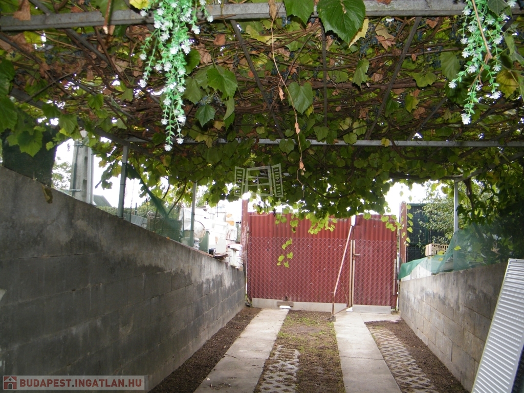 Parkolás: a kerten belül szilárd burkolatú, lugasos kialakítású kocsibeállóban.