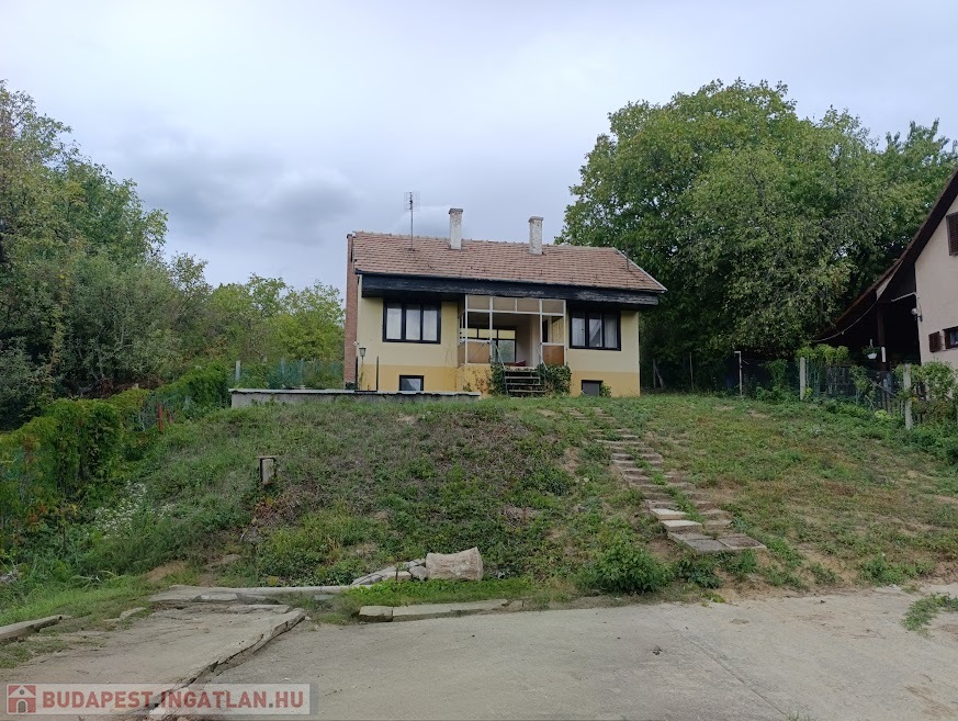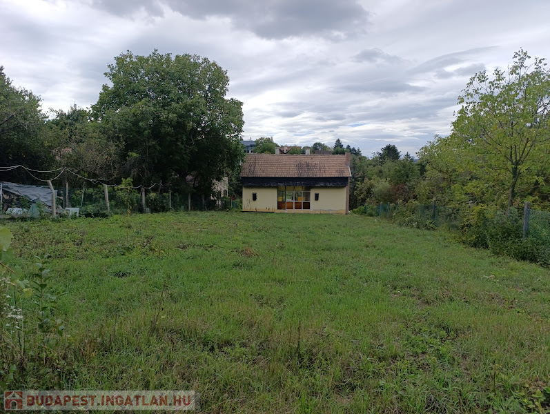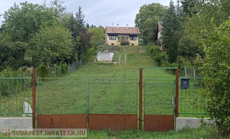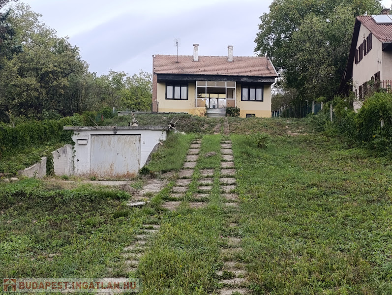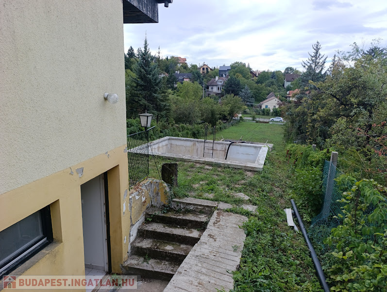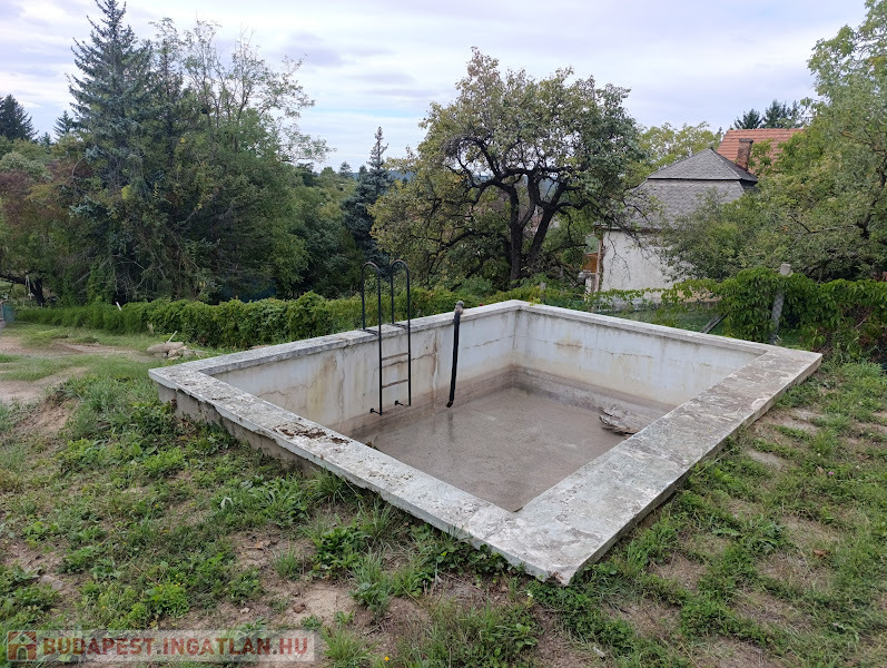 For sale in Budakeszi, in a quiet and green residential area: a 2024 m² fully serviced inner-area (LKE5) plot, featuring a two-storey 78 m² house, a 36 m² concrete garage, and a swimming pool.