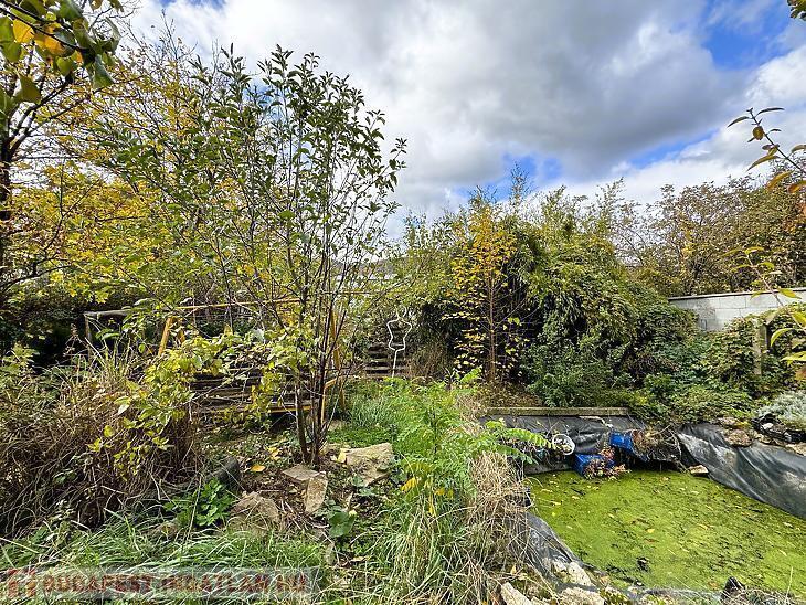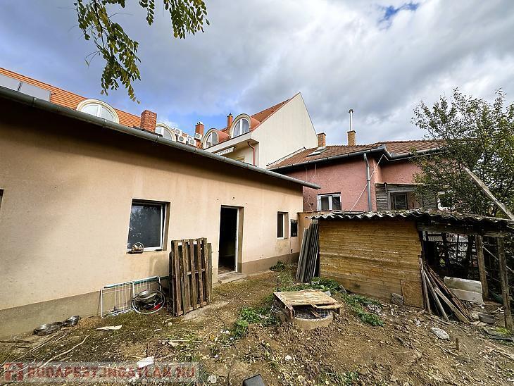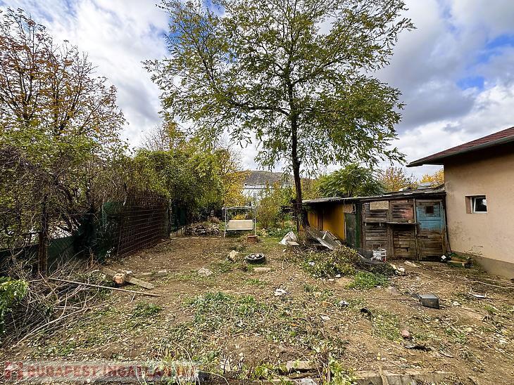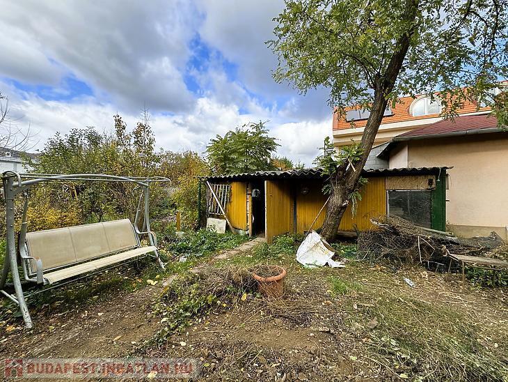 A telken jelenleg két különálló épület és egy dupla beállós garázs található, amely felújítást igényel, de akár bontás után az új építkezéshez is jó alapot nyújthat.