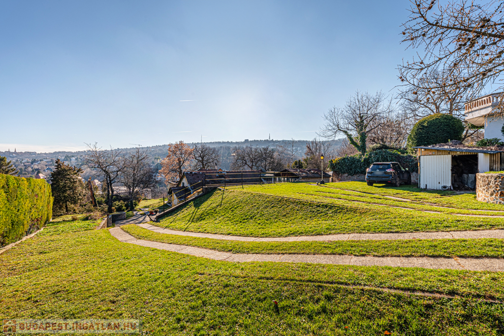 XII. Kútvölgy – Virányos találkozásnál, elegáns részen, luxus családi házak környezetében, gyönyörű kilátással rendelkező, magaslaton elhelyezkedő, TÖKÉLETES DÉLI tájolású, 1750 nm–es, összközműves építési telek, plusz ~550 nm telekhasználati területtel együtt eladó!
