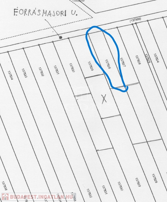 Leginkább befektetés céljából, a XVII. kerületben, a Forrásmajor utcában eladó egy 834 m2 területű (60 m *13,9 m) telek.(Lke-1/44)