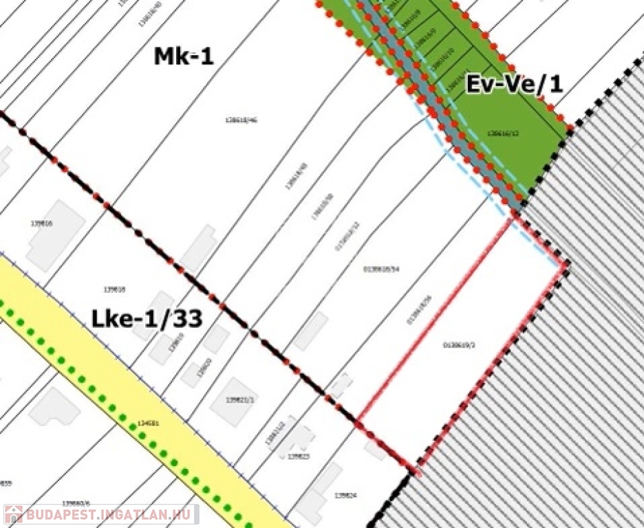 A telek külterület besorolásba esik, 3% beépítés lehetséges.