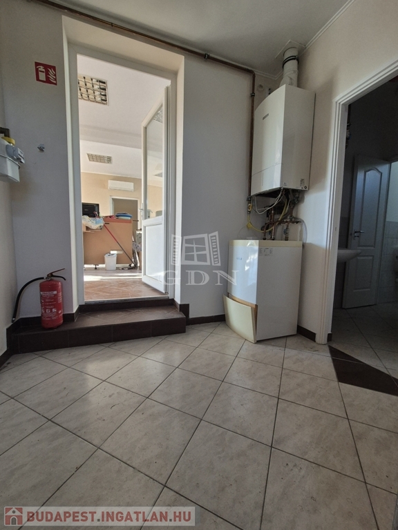A nagy részben betonozott és térkövezett telken egy körbejárható, szigetelt, kifogástalan állapotú, korszerű gépészettel, konyhával, tárgyalóval, szobákkal és szociális helyiségekkel rendelkező, 200 m2 alapterületű épületet találunk.