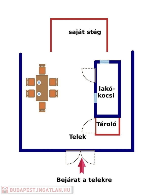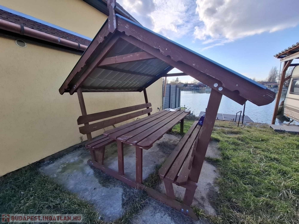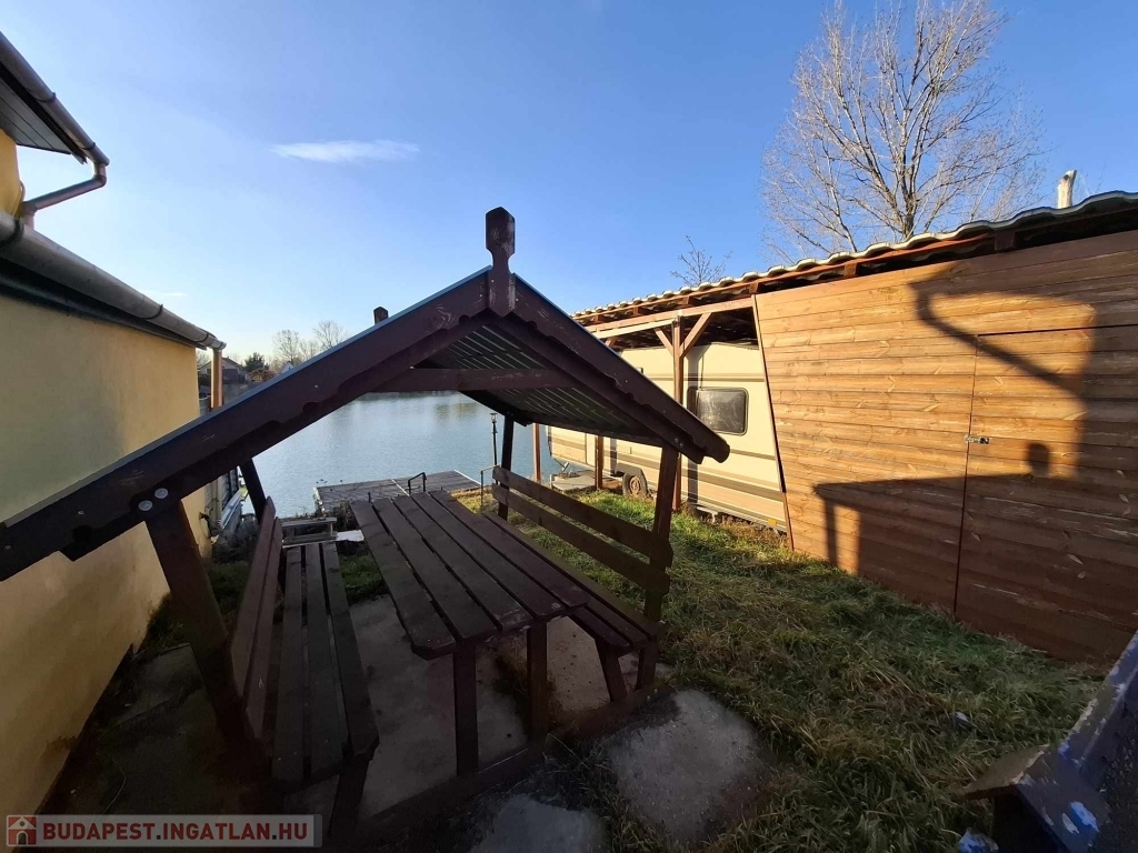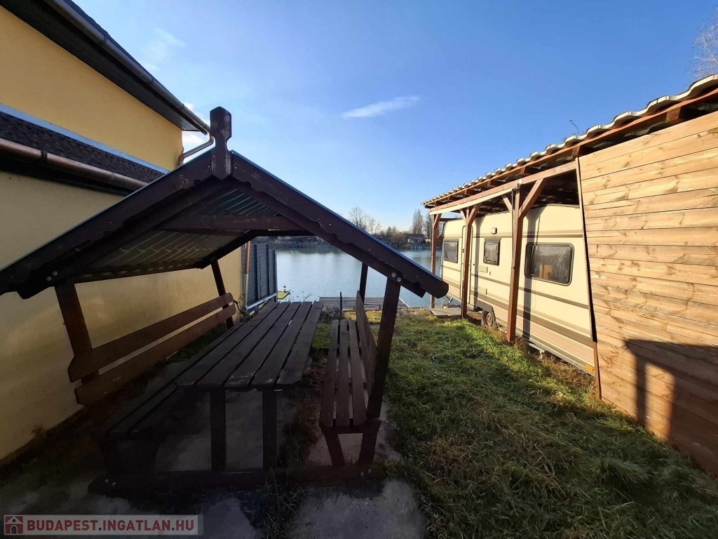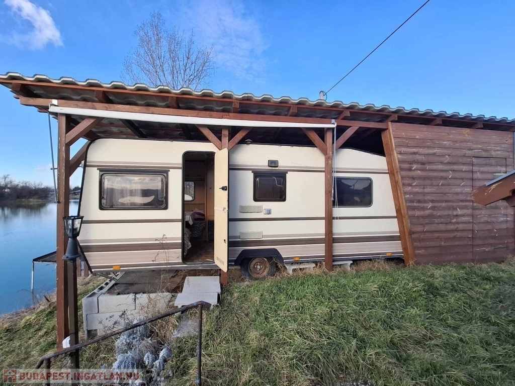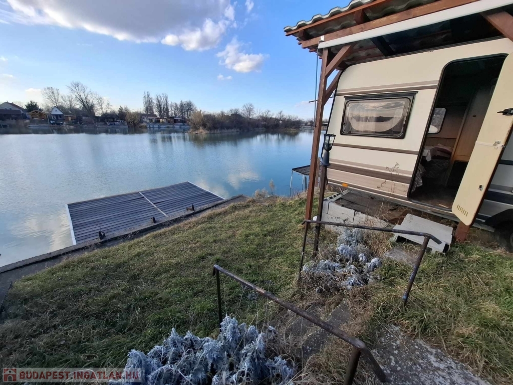 Cegléd belterületén a horgásztavak közvetlen partján eladó picike telek (49 m2) saját stéggel, lakókocsival (11 m2) és 6 m2-es fa tárolóval, kerti fedett fa kiülős garnitúrával (2 pad és asztal). A lakókocsi összes berendezése az ár részét képzi + a kerti fa kiülős rész is + a tároló kinti mosdóval benne. A horgászási lehetőséget nyújtó, gyönyörű vízparti telek előtt megy el a villany és csatorna hálózat az utcában - vezetékes víz a másik utcában található. A lakókocsiban étkező asztal, kis hálószoba ággyal, konyhabútor, zuhanyzó tálca és mosdó található. A tárolóban pedig a mellékhelyiség is helyet kapott.
