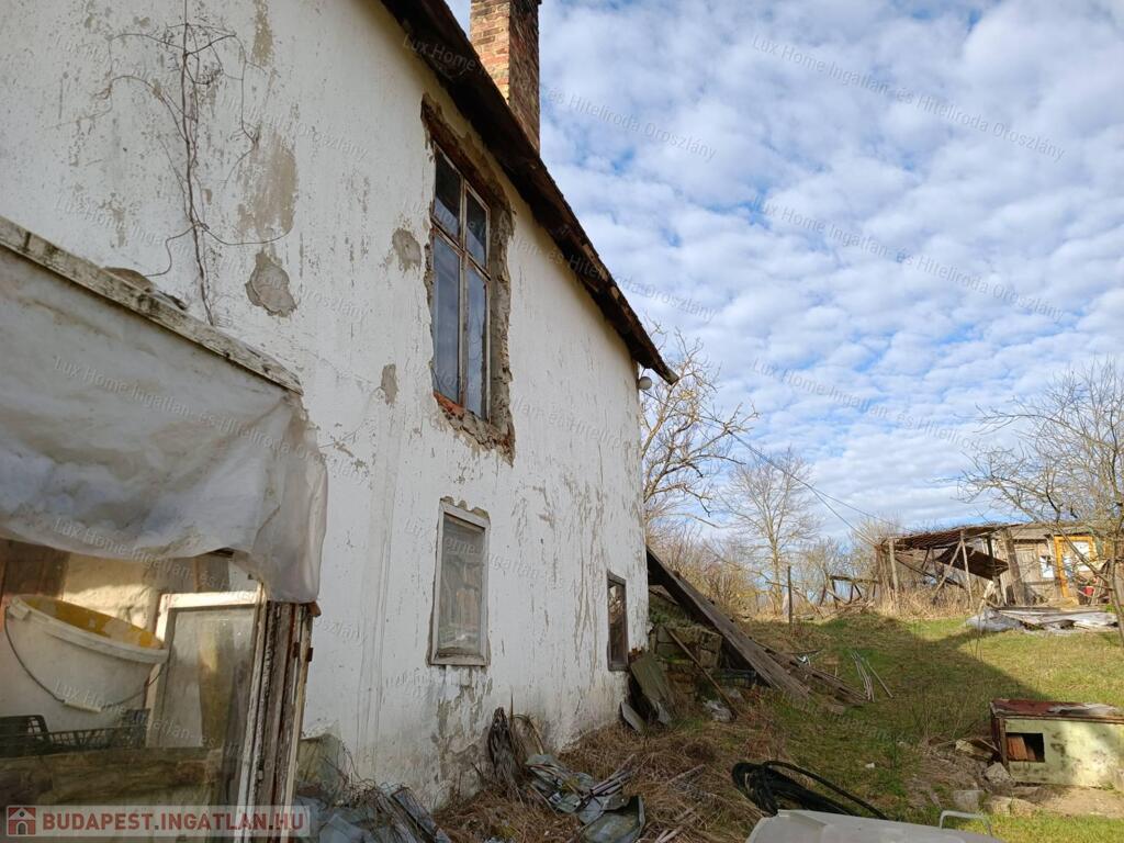 -Az egyik telken tégla építésű két szintes ház, mely felújításra vár. Alsó szinten egy előtér, szoba, kamra, vizesblokk, és szinteltolással egy pince található. A felső szinten egy szoba van jelenleg kialakítva, amiből erkély is nyílik. Jelenleg ablakos, az erkély nem használt.