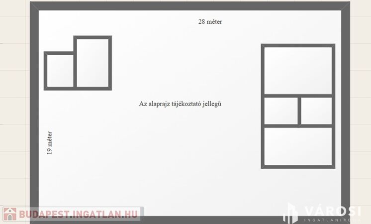 A telek hossza (szélessége) utcafronton 28 méter, mélysége 19 méter.