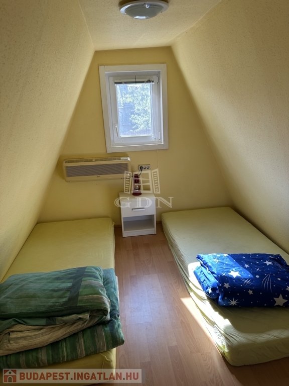 A telken található egy 30 m2-es hasznos alapterületű kétszintes faház. Alsó szint-nappali, konyha, fürdőszoba, felső szint-két hálő helység. A zuhanyzóban a meleg víz előállítás elektromos átfolyós vízmelegítővel megoldott.