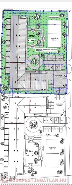 Mindkét projekt részét képezi egy-egy 300 m²-es teniszpálya, valamint gazdasági parkoló.