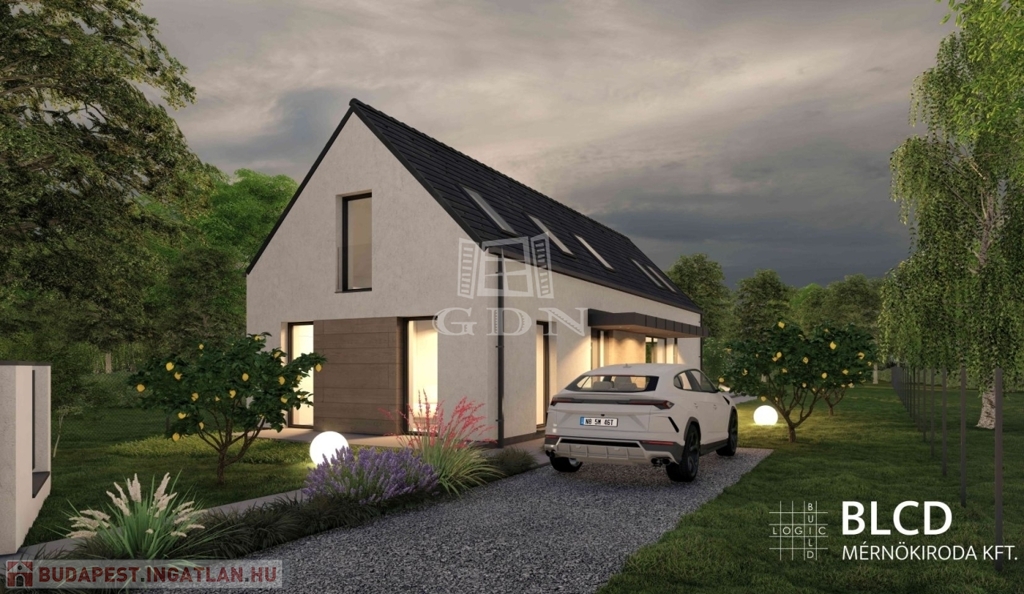A telekre 2 szintes, összesen 145 nm-es hasznos alapterületű családi házat terveztek, melynek földszintjén amerikai konyhás nappali, fürdő, háztartási helyiség, és egy szoba kap majd helyet. Az emeleten 2 hálószoba, fürdőszoba, és külön WC kerül kialakításra. Amennyiben a vevő szeretné, a jelenlegi tulajdonos részletes megbeszélés után, kulcsrakészre építi a házat.