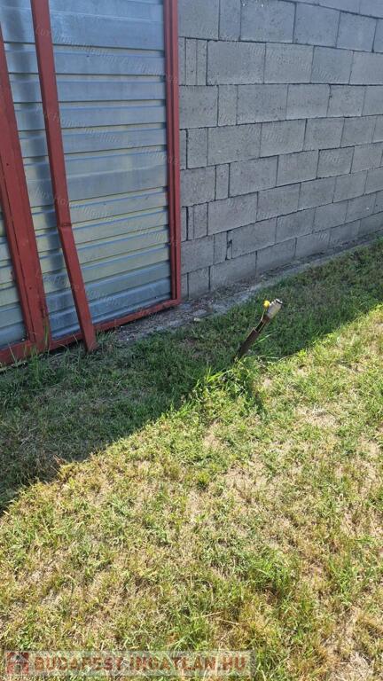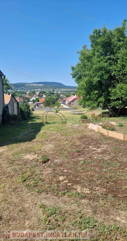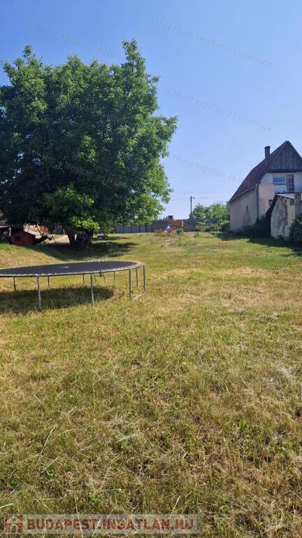 Enyhén lejtős, szépen gondozott telek, 20 méter széles és három oldalról bekerített.
