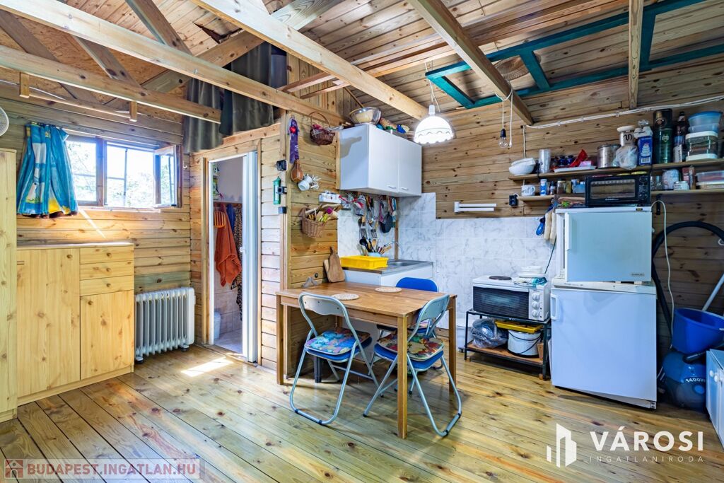 In Gödöllő, just 2.6 km from the Máriabesnyő Basilica and the Incső residential park, a 731 m² inner-city building plot is for sale, classified as Lke 0.6 (garden residential zone), including a 22 m² insulated wooden house.