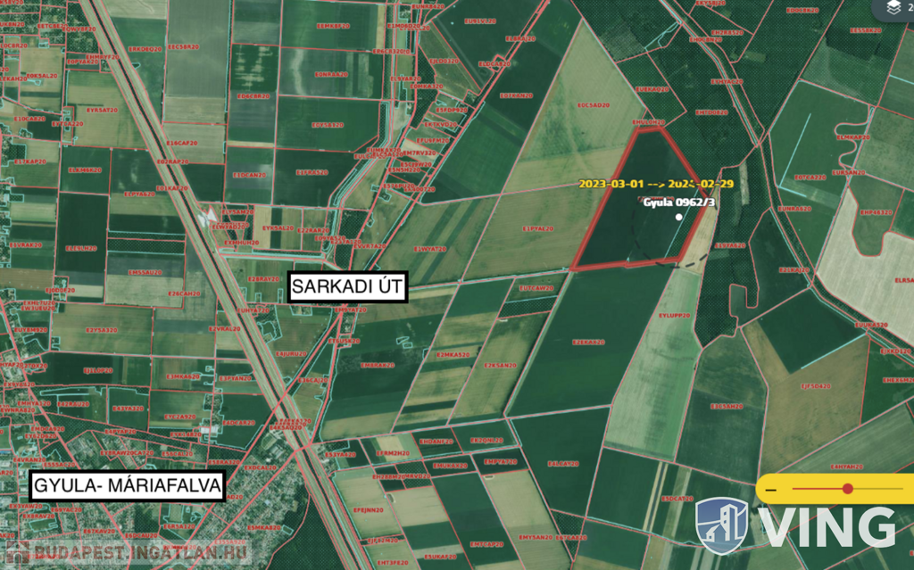 Gyula külterületén, a Sarkad út mellett, Oláh-Rétben eladó egy 2,02 ha alapterületű szántó besorolású termőföld. Az ingatlan teljes alapterülete 4,0468 ha, értéke 76 AK (melyből 0,4428 ha 10.41 AK és 3,6040 ha 65,59 AK), melynek az 1/2 tulajdoni hányada vásárolható meg. A termőföld folyamatosan művelve van, jelenleg is hosszútávú haszonbérleti szerződéssel rendelkezik a tulajdonos. A föld a Sarkadi útról bekötőúton keresztül megközelíthető. Befektetést keres, vagy gazdálkodni szeretne? Itt a tökéletes választás! Várom hívását!