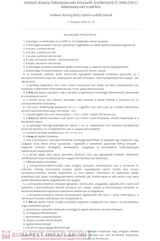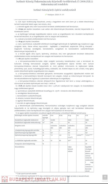 7. A K-t jelű építési övezetben