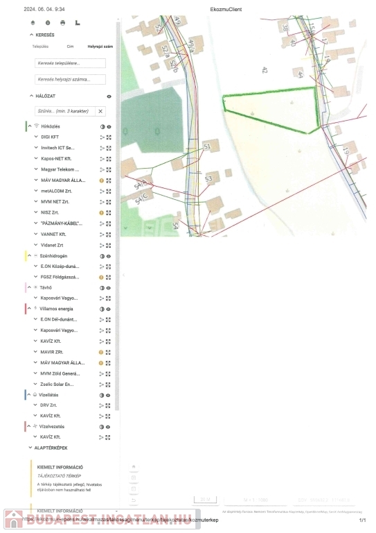Valamennyi közmű megtalálható az utcában, a telek előtt vezetnek el.