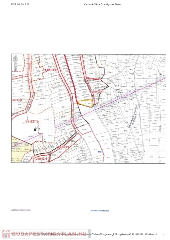 A telek Lke-o/4 övezeti besorolásba tartozik mely szerint: