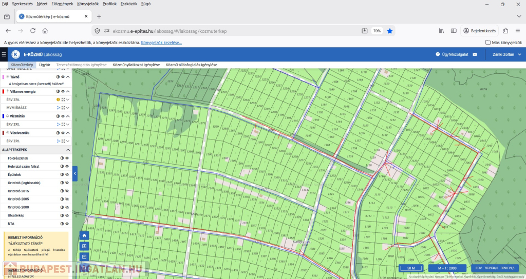 Víz telken belül. áram az utcában a telkek közelében, a két telek körbe volt kerítve, de a kerítés javítandó állapotú.A telek jelenleg bokrokkal benőtt, gazos, megközelítéséhez rossz időben összkerekes jármű kell.